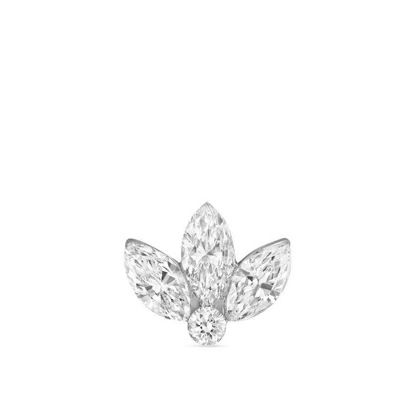 An iconic MARIA TASH design, this stud features three invisible marquise diamonds arranged in a lotus-inspired form. Crafted using our patented design, the setting eliminates visible bezels and prongs, placing full emphasis on the diamonds themselves and allowing them to appear weightlessly on the skin.