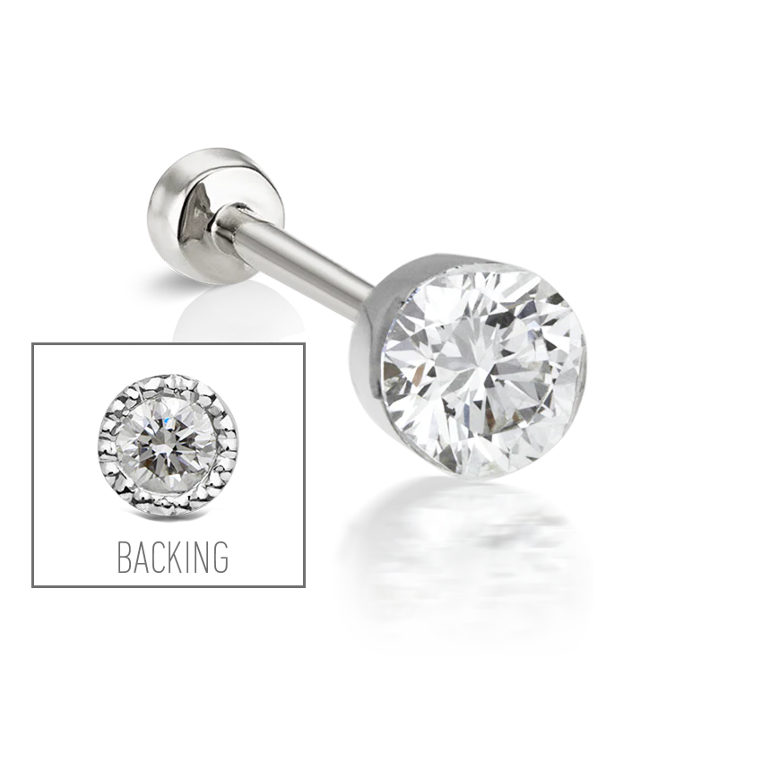Invisible Diamond Threaded Stud Earring with Diamond Back