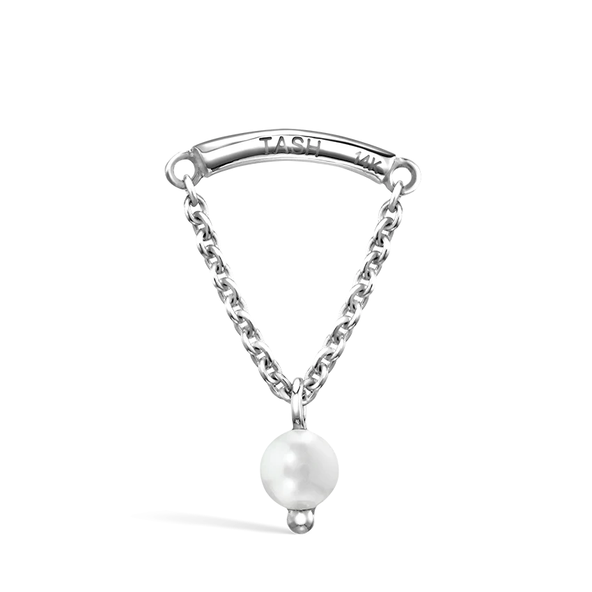 Add a touch of movement and luster to your Curated Ear®. This patented design features a timeless pearl hanging from a solid gold chain to create the illusion of a strand mysteriously emerging.